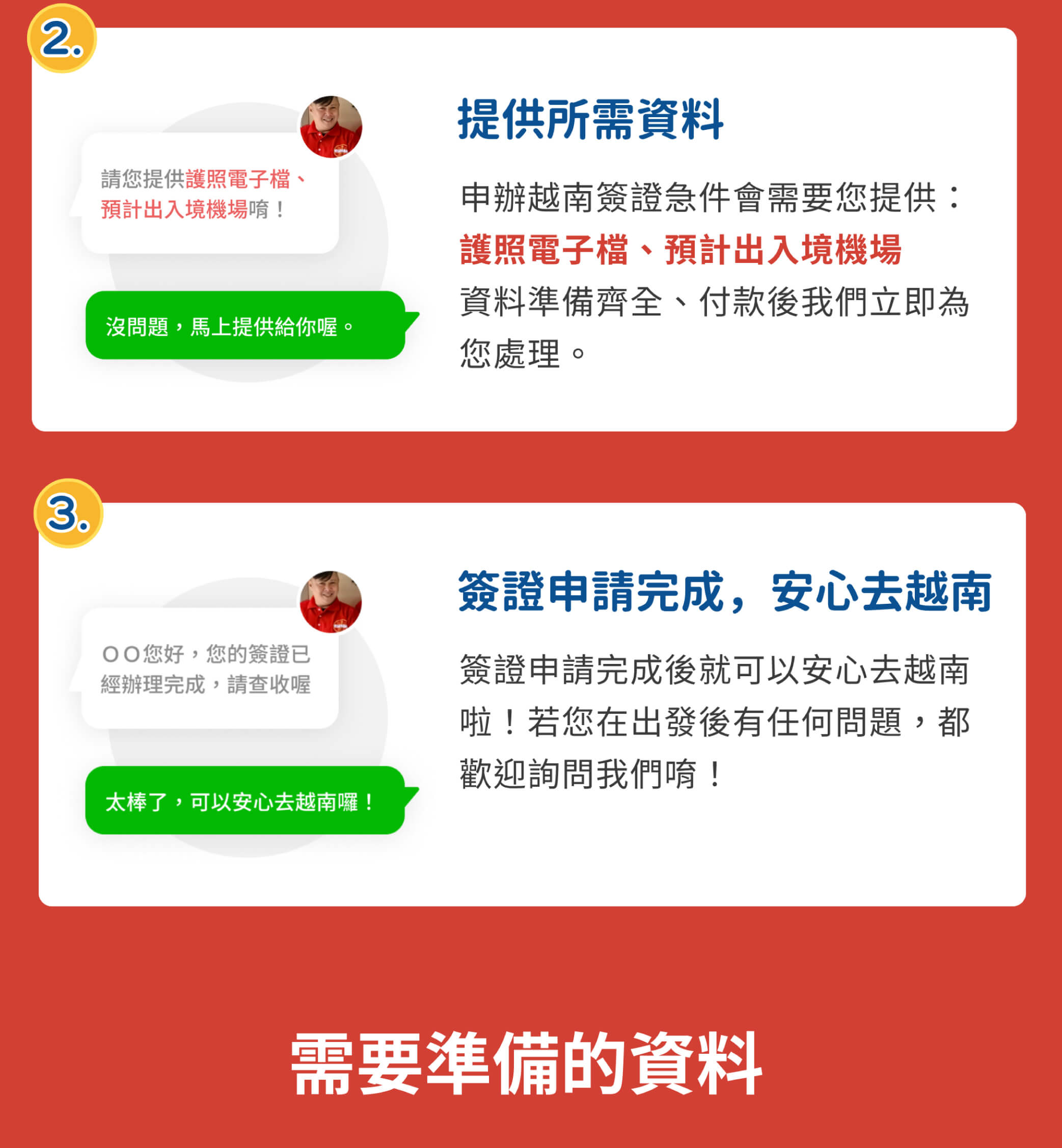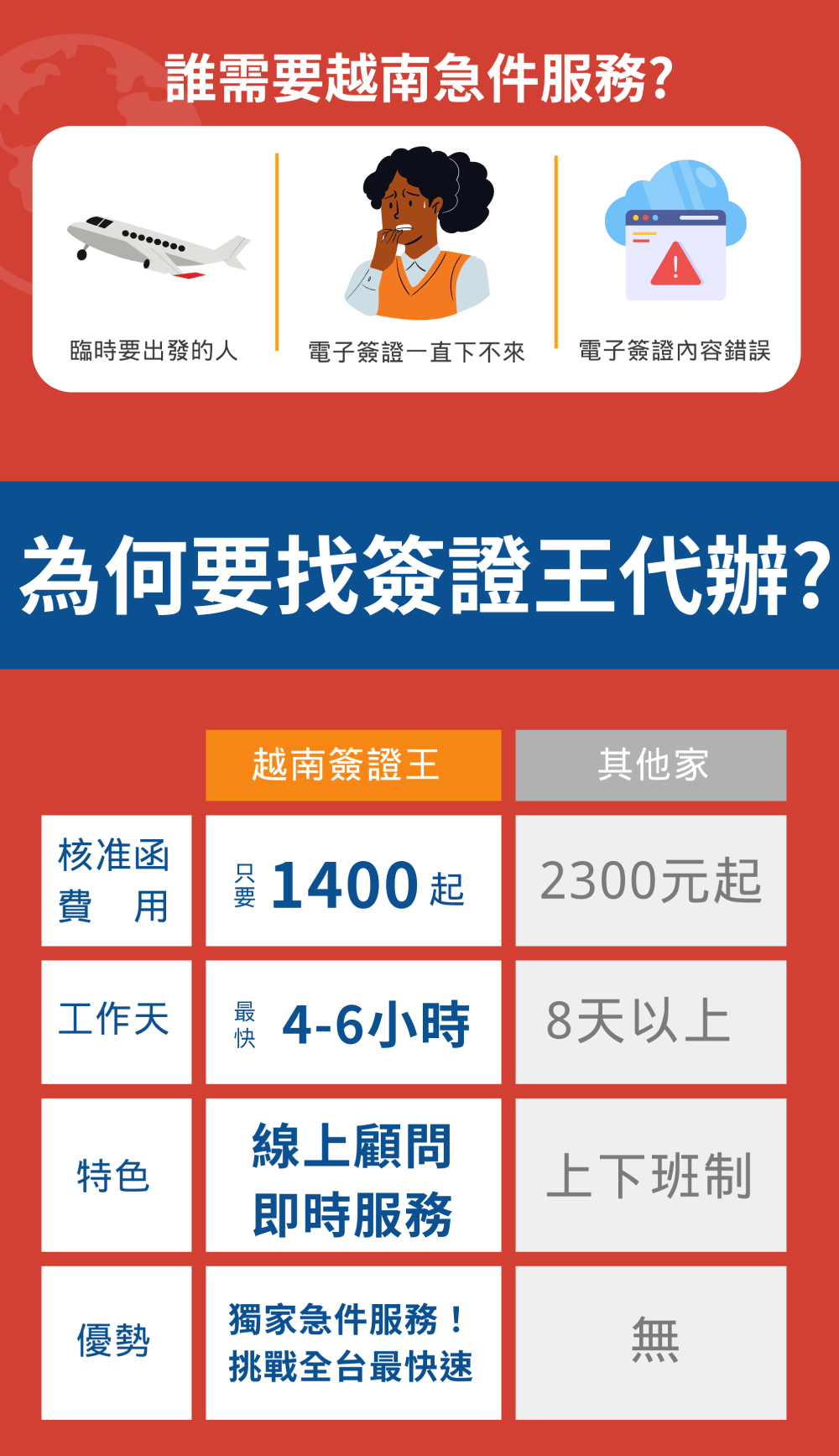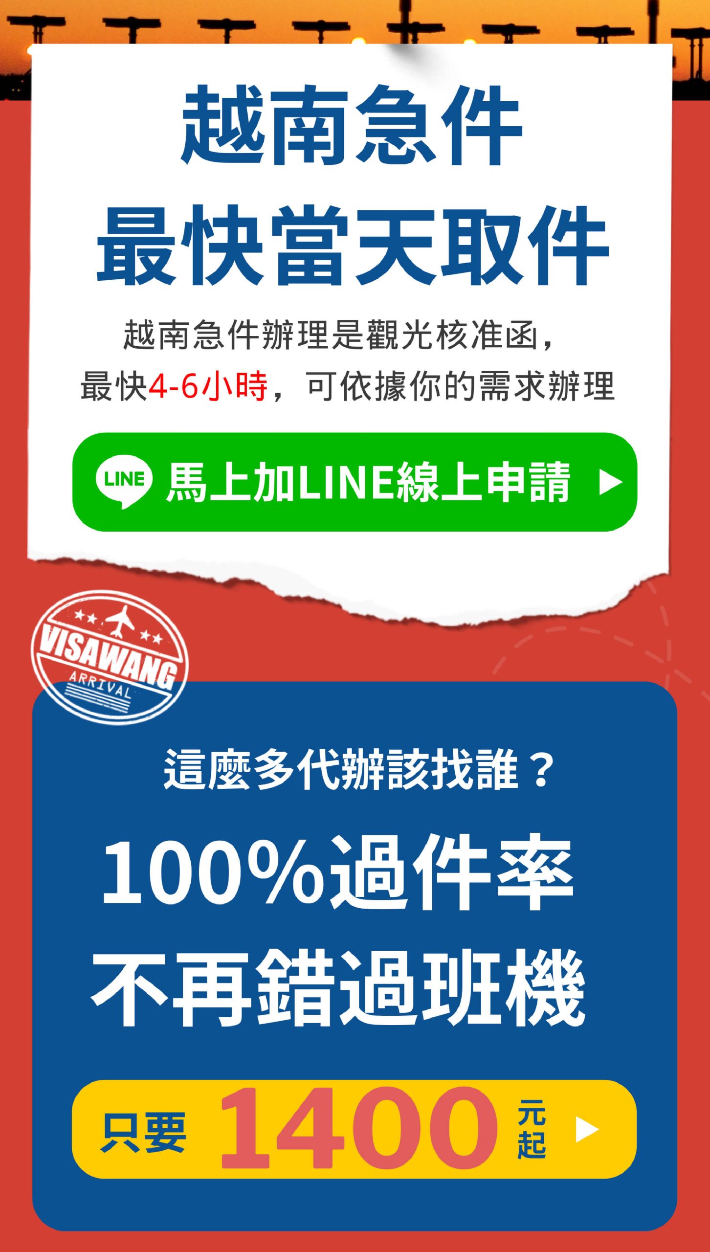 抱歉,越南政府假日不辦公,因此我們只能在周一幫您處理緊急簽證申請。如果您能調整航班,請儘速提供護照照片和調整後機票的截圖,我們會確認周一早上提交申請是否足夠您順利出發。最早可能的飛行時間是周一中午12點之後!