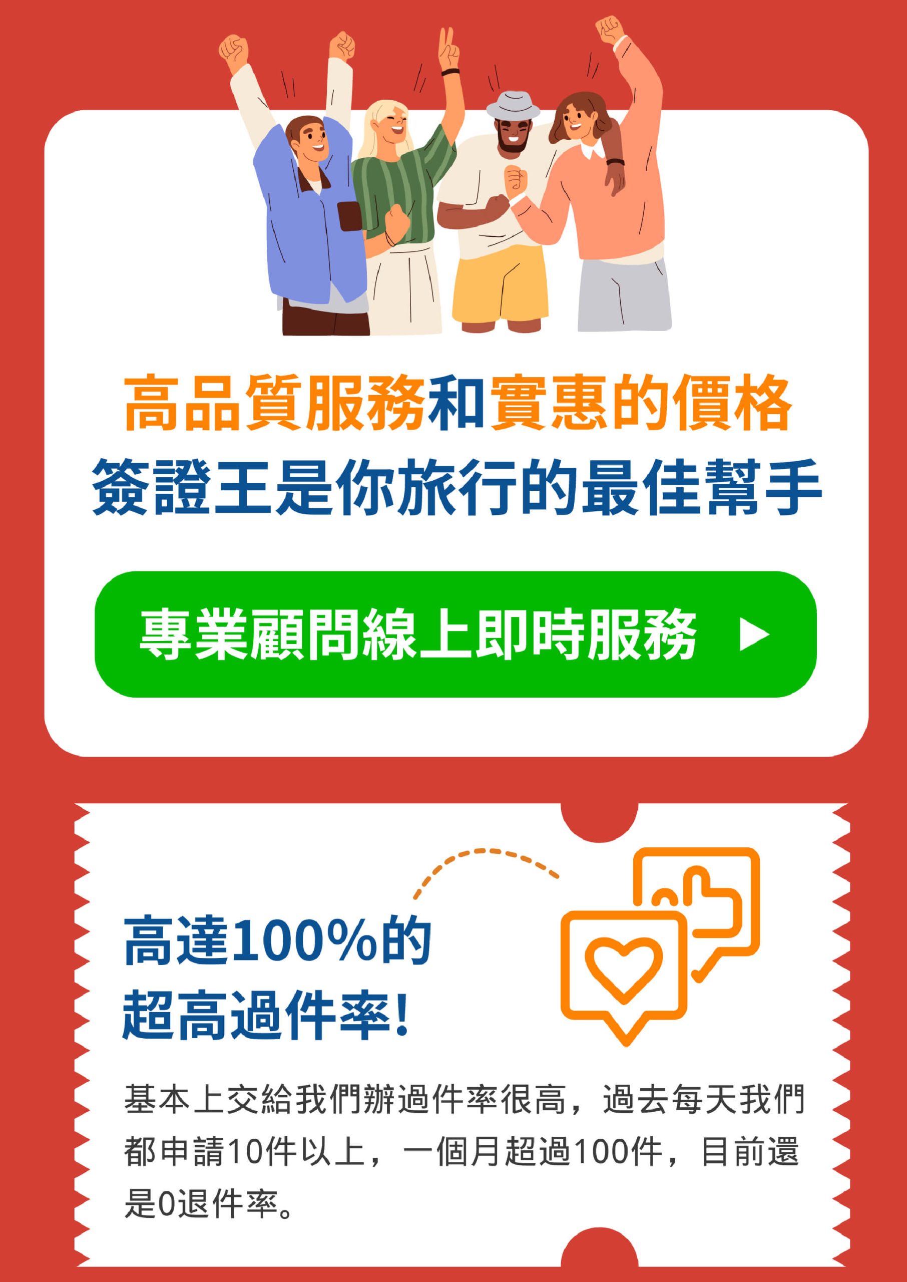 我們提供全線上的簽證申辦服務,這意味著您不需要親自到辦公室或透過郵寄繳交文件。我們這麼做是希望即便您不在本地,也能夠方便快捷地完成申請,無需關心地理位置的限制。